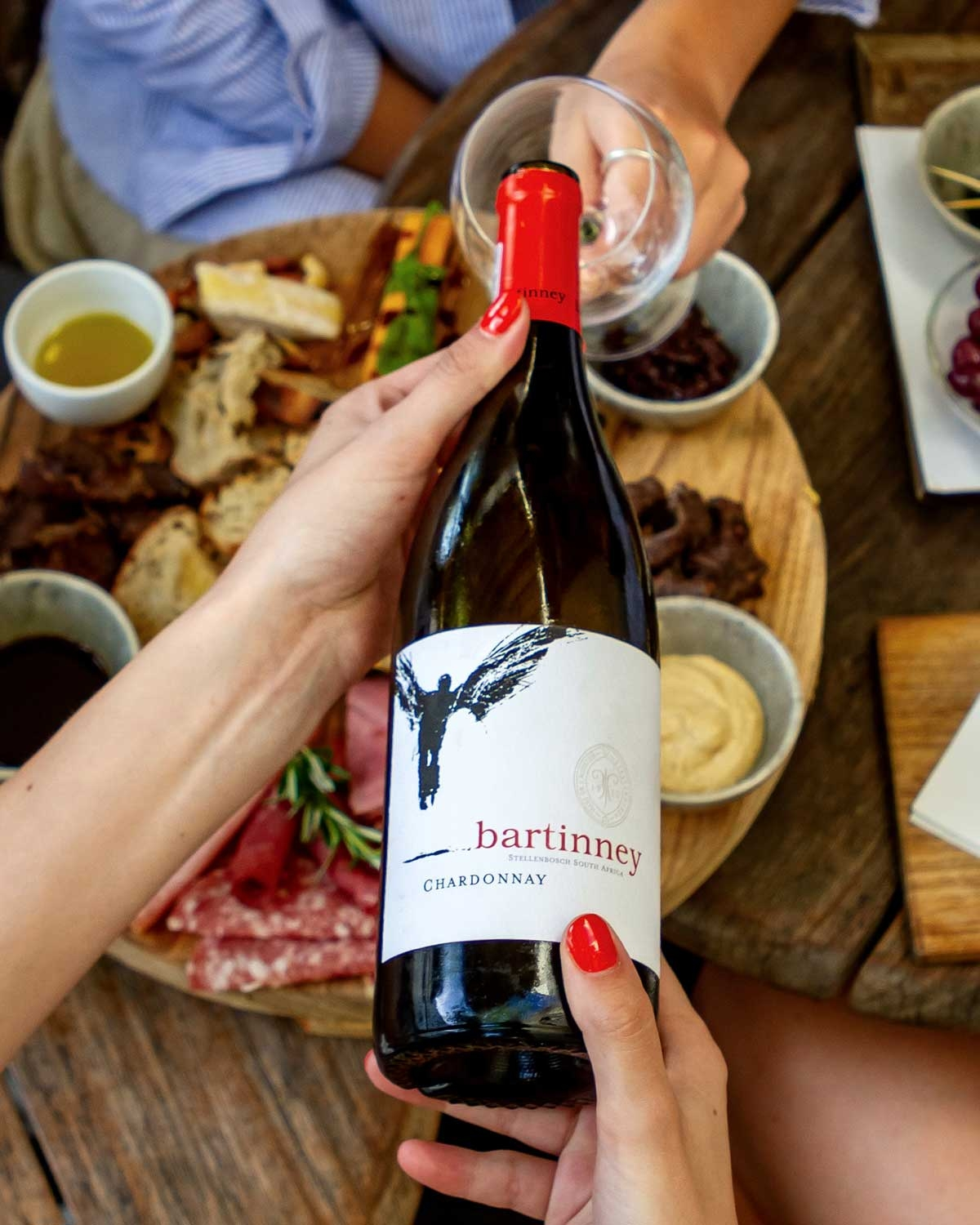 Der Bartinney Chardonnay präsentiert sich im Glas in einem klaren Gelb mit leicht grünlichen Reflexen - ein Hinweis auf seine Frische. In der Nase zeigen sich reife Zitrusnoten wie fein geriebene Zitronenschale, begleitet vom zurückhaltenden Duft frischer Brioche.