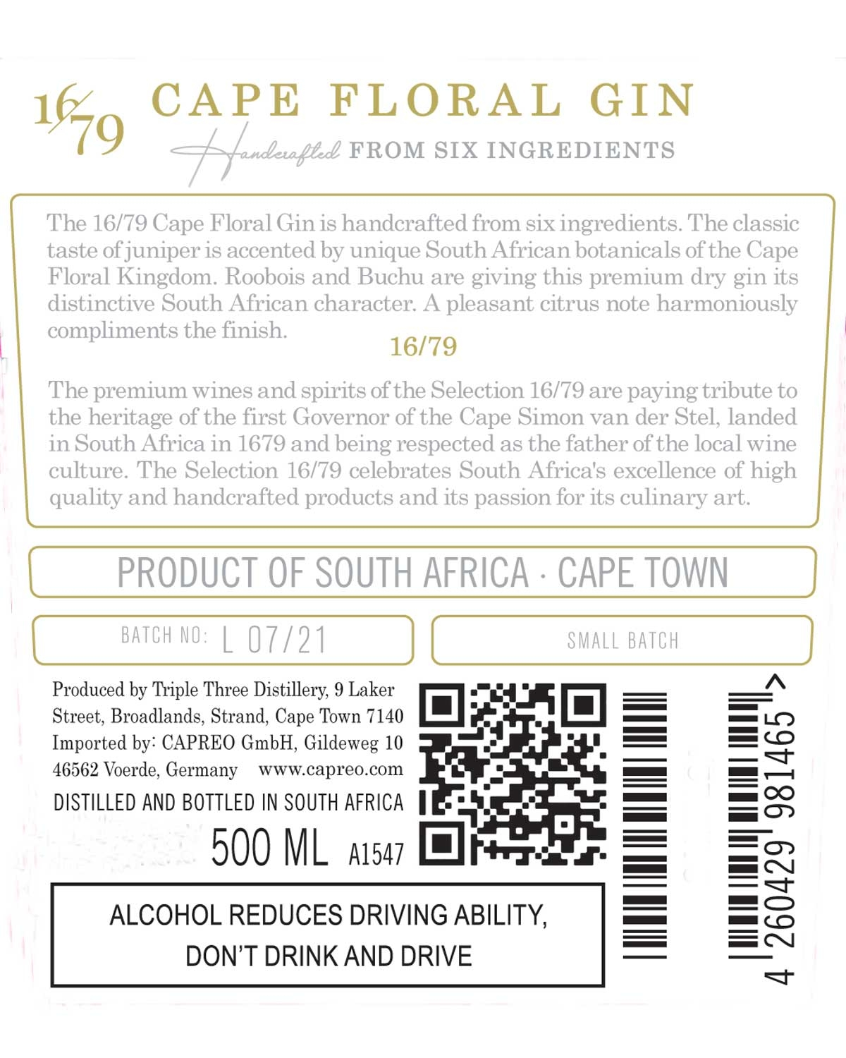 The clean, sophisticated bottle design mirrors the handcrafted nature of this limited release. The Cape Floral Gin is part of the Selection 16/79 range, which pays tribute to Simon van der Stel - founding father of South African wine - and reflects the diverse character of the Cape Winelands.
