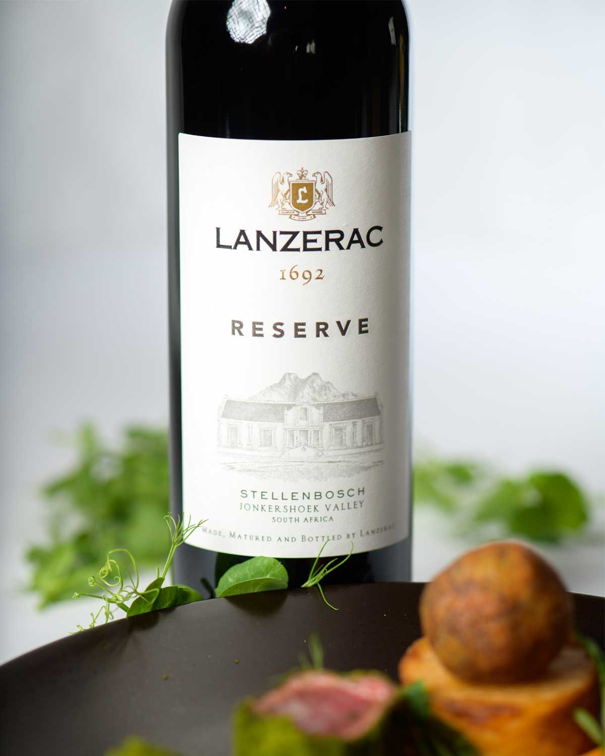 The Lanzerac Jonkershoek Reserve 2021 is a powerful blend of Cabernet Sauvignon, Shiraz and Petit Verdot that beautifully reflects the unique terroir of the Jonkershoek Valley.