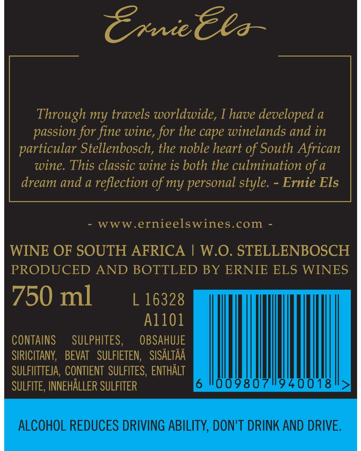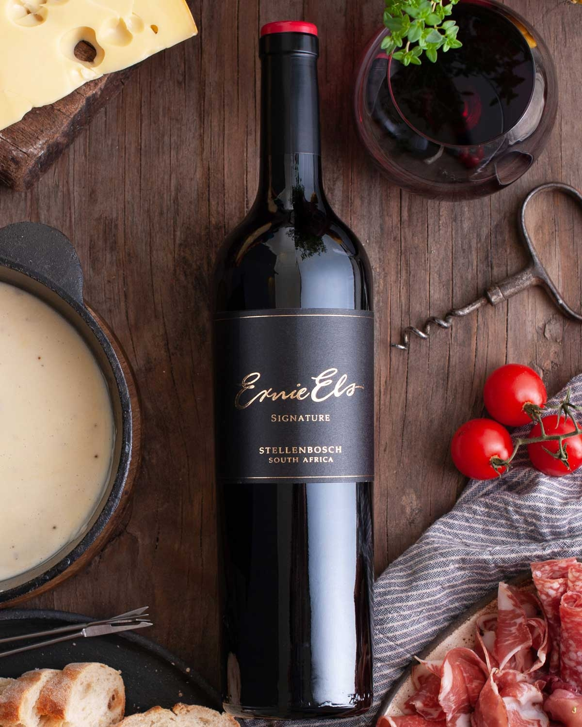„Passion for elegance“ – dieses Motto gilt für Ernie Els nicht nur im Sport, sondern auch für seine Weine. Da der zur Weltspitze gehörende Profigolfer auf seinen zahlreichen Reisen in den Genuss exzellenter Weine kam, entstand die Idee, ein eigenes Weingut zu gründen. Die Wahl für den Standort fiel auf Stellenbosch und die Weinberge am Fuße der Helderberg Mountains bieten vor allem den roten Rebsorten beste Bedingungen. Es sind auch die Rotweine – allen voran der Ernie Els Signature – für die das renommierte Weingut bekannt ist.