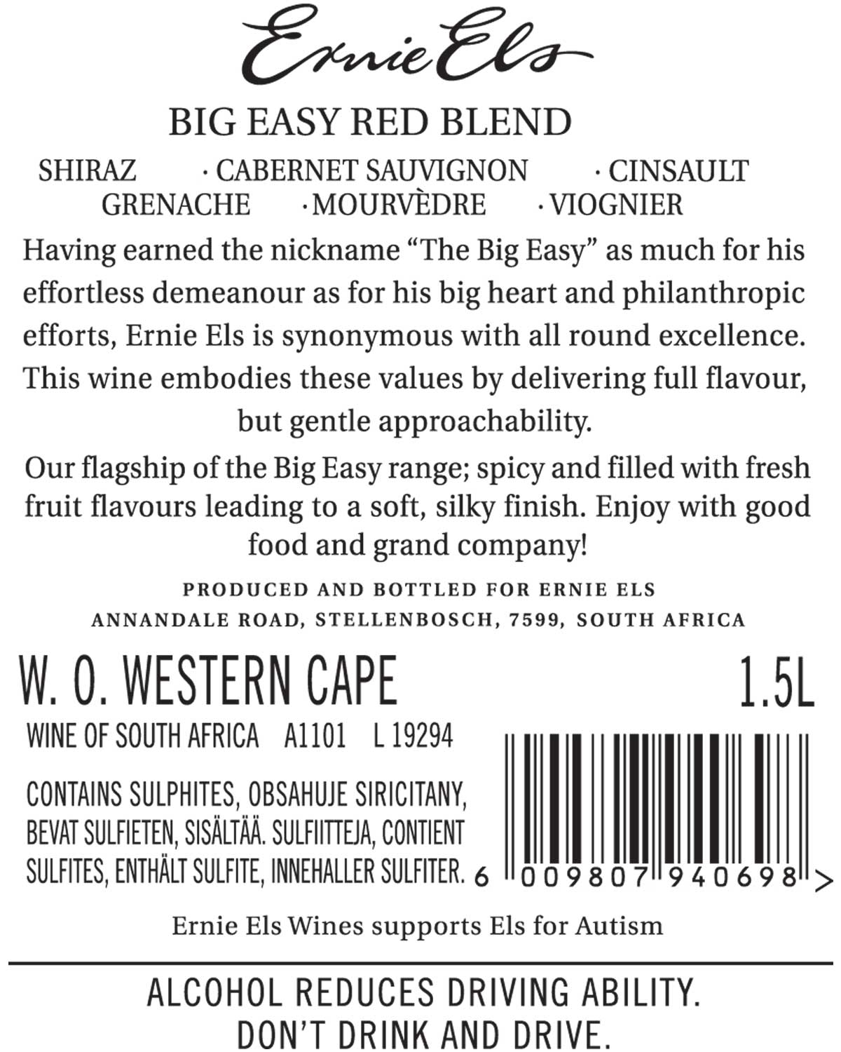 Das Cuvée aus Cabernet Sauvignon (50 %), Shiraz (30 %), Merlot, Cabernet Franc, Petit Verdot und Malbec (je 5 %) reifte 14 Monate in französischer und amerikanischer Eiche.