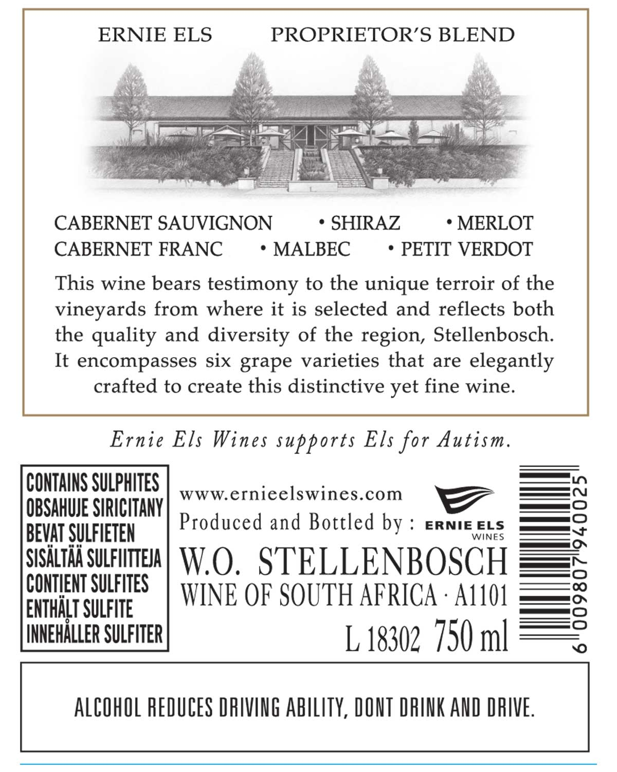 Weiche Tannine verleihen dem fein strukturierten Ernie Els Proprietor’s Blend ein seidiges Mundgefühl, bevor er sich mit einem würzigen Abgang verabschiedet.