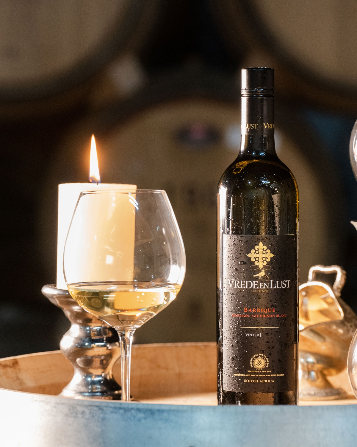 Am Gaumen präsentiert sich der Vrede en Lust Barrique reichhaltig und komplex mit erdigen Noten, einer eleganten Balance und anhaltenden mineralischen Nuancen. Aromen von reifer Birne, Quitte, Apfel und Jasminblüten treffen auf einen Hauch von Haselnuss, der durch den moderaten Holzeinsatz entsteht.