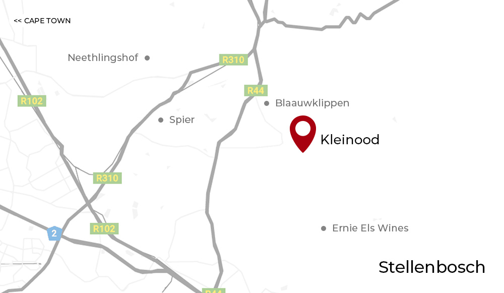 Im Jahr 2000 entdeckten Gerard de Villiers und seine Frau Libby ein Stückchen Land in Stellenbosch – und schufen aus einer heruntergekommenen Obstfarm das Weingut Kleinood (Afrikaans für Kleinod). Gerard ist leidenschaftlicher Ingenieur und hat schon einige bedeutende Weinkeller in Südafrika konstruiert. Den State of the Art-Keller von Kleinood hat Gerard de Villiers natürlich selbst entworfen und gebaut. Mit dem 10 Hektar großen Land erfüllte er sich einen Traum – seine Frau und er analysierten Boden und Klima, pflanzten einheimische Pflanzen und setzten 200 Bäume. Die fokussierte Arbeit und die lange Suche nach dem richtigen Standort für die Reben haben sich gelohnt: Heute wachsen hier ausgezeichnete Syrah Trauben, ergänzt von Viognier. Auf dem familiären Weingut werden vier wunderbare Weine hergestellt.