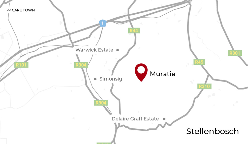 - Muratie, Knorhoek Road/R44, Koelenhof, Stellenbosch, Südafrika