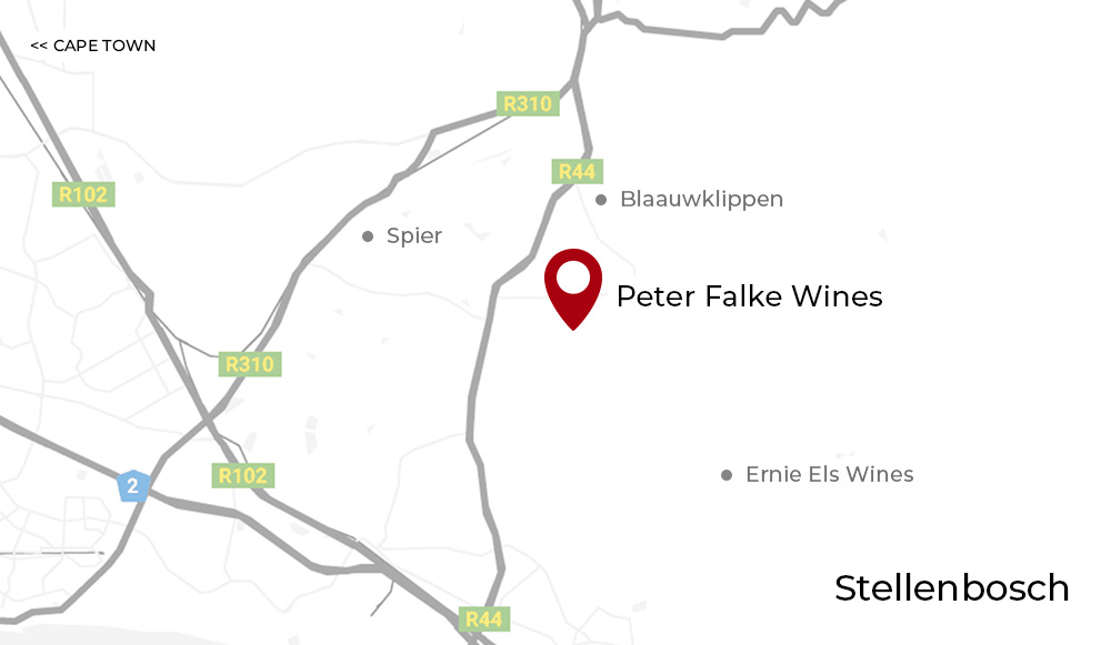 Das Weingut Peter Falke profitiert von einem außergewöhnlichen Terroir in Stellenbosch, der berühmtesten Weinregion des Landes. Das maritime Klima mit seinen konstant angenehmen Temperaturen gibt den Trauben exzellente Bedingungen zur Reifung. Für das Team von Peter Falke Wines stellt die Weinherstellung Kunst und Wissenschaft zugleich dar. Seit Jahrzehnten haben die Winzer des Weinguts beobachtet und gelernt, das außergewöhnliche Terroir bestens auf die jeweiligen Rebsorten abzustimmen. Mit der traditionellen Handlese und einer Weinherstellung mit minimalen Eingriffen entstehen absolute Premiumweine aus Südafrika.