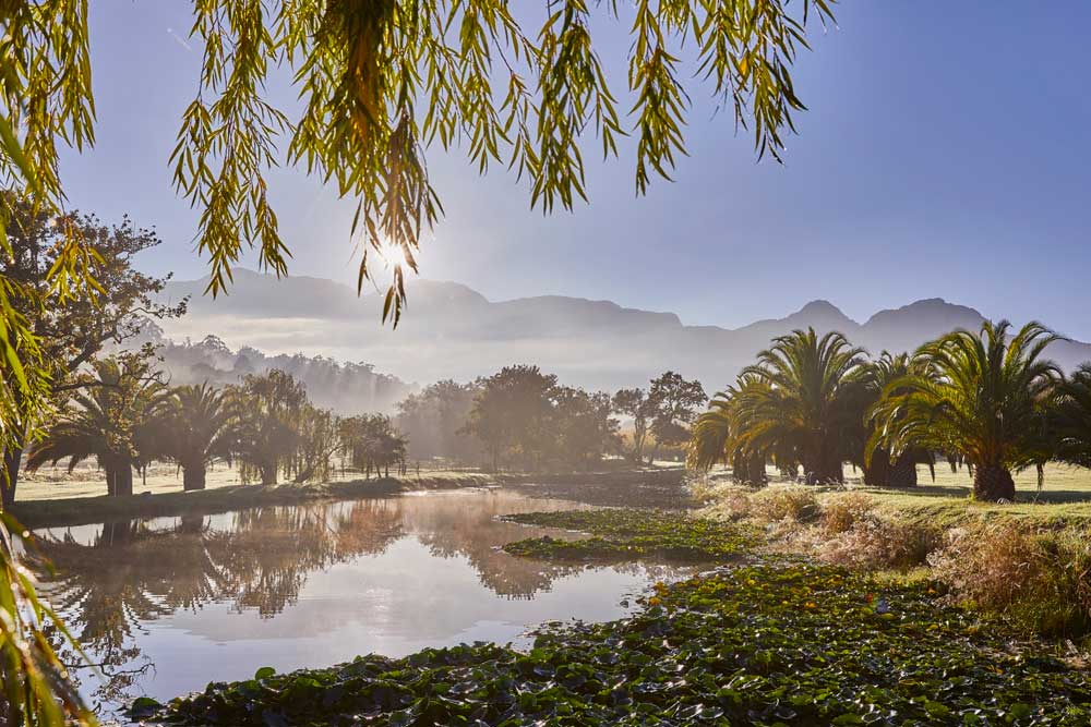 Im Herzen der südafrikanischen Weinregion Stellenbosch, an den Hängen der Helderberg Mountains, liegt das Weingut Peter Falke Wines. Die hier beheimatete Groenvlei Farm stammt bereits aus dem 18. Jahrhundert. Der weltweit bekannte Strumpfwarenhersteller Peter Falke und seine französische Ehefrau Daniele zählen heute zu den renommiertesten Weinherstellern Südafrikas. Peter Falke entdeckte bereits in jungen Jahren seine Begeisterung für das Land Südafrika und südafrikanischen Wein. Anlässlich einer Standorteröffnung des Textilherstellers Falke in den 1970er Jahren, besuchte er fortan regelmäßig Land und Leute. Jahre vergingen, bis der erfolgreiche Unternehmer und seine Ehefrau sich dazu entschlossen haben, ihren Traum zu erfüllen. Mitte der neunziger Jahre erwerben sie das traditionsreiche Groenvlei Anwesen. Das Weingut Peter Falke Wines erstrahlt heute gänzlich in einer Mischung aus langjähriger Tradition und zeitgemäßer Moderne. Daniele ist als Designerin maßgeblich für die wunderschöne Innenarchitektur des Gebäudes und die Raumausstattung verantwortlich. Das Ambiente wird von einer hochmodernen Weinkellerei, einer edlen Boutique voller Harmonie sowie einer luxuriösen Outdoor-Lounge inklusive eines angrenzenden Restaurants komplettiert. All diese Komponenten runden das Wohlfühl-Paket auf dem Gut ab.