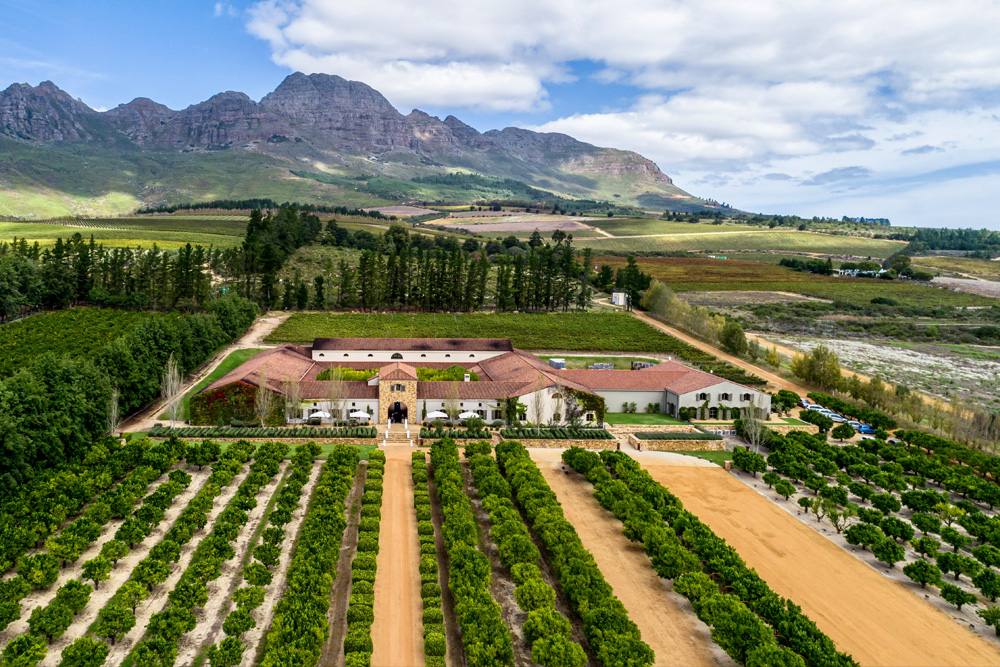 Der Architekt Alex Walker entwarf das südafrikanische Weingut Waterford, das von Zitronenbäumen umgeben ist. Der Innenhof spricht alle Sinne an: Der sprudelnde Wasserfall des Springbrunnens, der Duft nach Orangenblüten und Lavendel, die Aussicht auf die Berge und der Geschmack vom Waterford Wein kreieren ein einmaliges Erlebnis. Eine große Rolle spielt der nachhaltige Anbau. Nur die Hälfte des Weingutes steht unter Reben, der Rest ist der Renaturierung und der Erhaltung der ursprünglichen Fynbos-Landschaft gewidmet. Damit dies bestmöglich gelingt, arbeiten Waterfords Farmmanager David und Winemaker Mark Le Roux Hand in Hand.