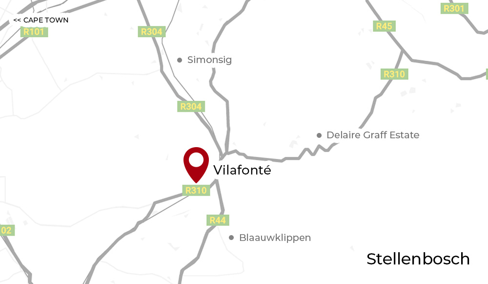 Mit dem Weingut Vilafonté wurde das erste amerikanisch-südafrikanische Experiment der Weinwirtschaft in die Welt gerufen. Die Amerikanerin Zelma Long, die zu den bekanntesten Weinmachern Amerikas zählt, und der Südafrikaner Mike Ratcliffe wollten am Fuße des Simonsberg Mountain etwas ganz Besonderes schaffen. Auf den 42 Hektar werden die besten Weine mit Einflüssen beider Weinkulturen kreiert. Die Weinmacher von Vilafonté beschränken sich dabei auf den Anbau von vier edlen Rebsorten: Cabernet Sauvignon, Cabernet Franc, Merlot und Malbec.